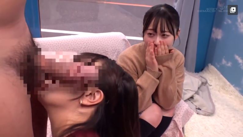 【マジックミラー号】「玉舐めたことある?」男の責め方の実地講習を受ける初心な女子高生は初めて体験する巨根に激イキ